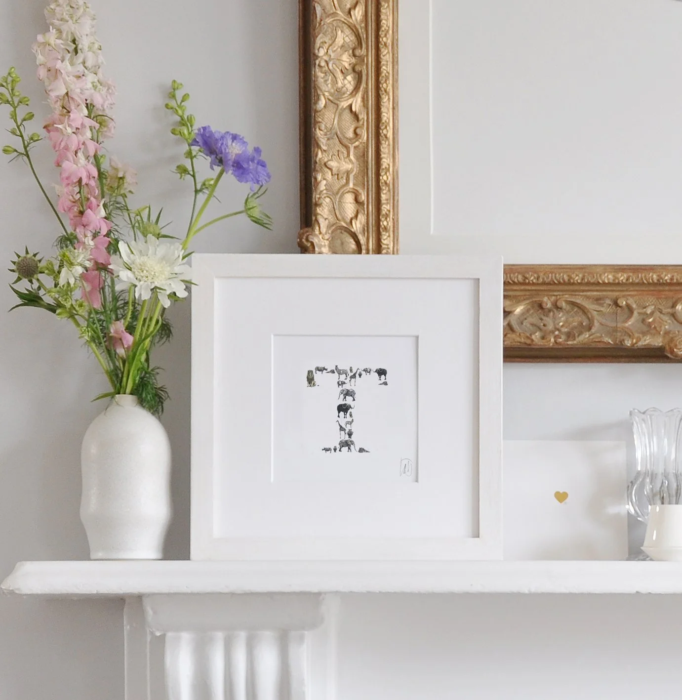 Hand painting a flower initial.